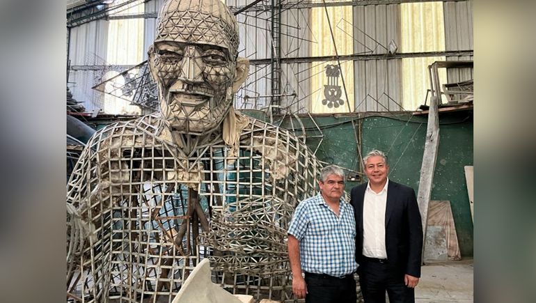 Santana explicó que la escultura se encuentra en estado de avance dentro de su taller en Junín de los Andes, donde reside desde hace unos 25 años. Es autor de obras emblemáticas como el Vía Christi, construido en el Cerro de la Cruz en un parque temático de 2,5 kilómetros, y el Cristo Luz, una enorme estructura de hierro revestido con vidrios triangulares que convirtieron a Junín en cuna del turismo religioso en la provincia.
