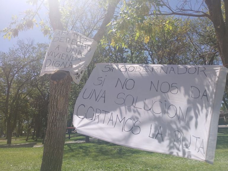 El domingo pasado 14 familias que aseguraron no podían pagar más el alquiler se instalaron en la plaza San Martín para pedir viviendas a la Municipalidad de Plottier. A pesar de diferentes gestiones y reuniones los vecinos continúan instalados en este lugar público a la espera de respuestas.