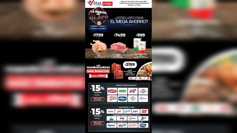 Las promos están a la vista desde este viernes y hasta el lunes 18 inclusive en la sucursal de Vital, ubicada sobre Avenida Mosconi. Ese mismo día inicia el Black en todos los mayoristas.