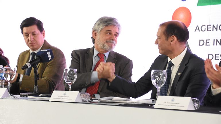 La ANIDE aún no tiene funcionario a cargo designado, y Gutiérrez convocó en el auditorio a los ex rectores de la Universidad Nacional del Comahue (UNCo) Ana Pechen y Gustavo Crisafulli a buscar la mejor persona para desarrollar al máximo esta agencia.