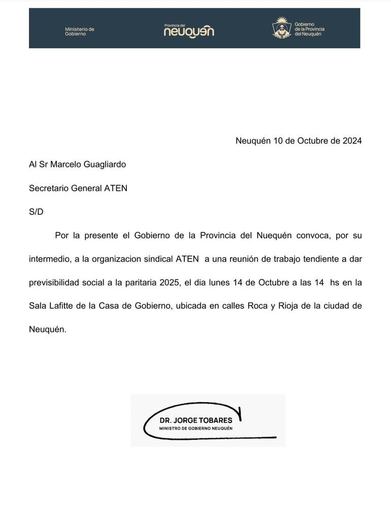 El secretario general de ATE se manifestó esperanzado por el inicio de las negociaciones salariales con vistas a definir la pauta salarial del 2025, cuya convocatoria se conoció precisamente este jueves a partir de una nota que el ministro de Gobierno, Jorge Tobares, hizo llegar a los sindicatos.