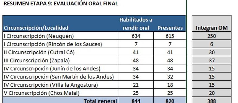 El maratónico concurso judicial, que inició este año con 22 mil inscriptos, llegó a su fin con los 388 mejores promedios registrados en una orden de mérito provisoria que representa a toda la provincia. La mayoría, 250, compitieron por un puesto en la circunscripción judicial de Neuquén, donde más de la mitad quedó afuera por debajo de los 8,87 puntos; y en otras jurisdicciones, como Zapala y Rincón de los Sauces, no se pudo completar el cupo que necesitaba la Justicia.