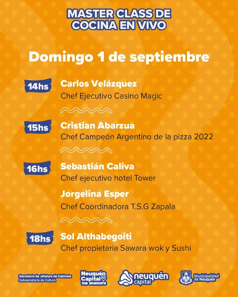16:00 Sebastián Caliva (Chef ejecutivo hotel Tower) y Jorgelina Esper (Chef Coordinadora T.S.G Zapala)