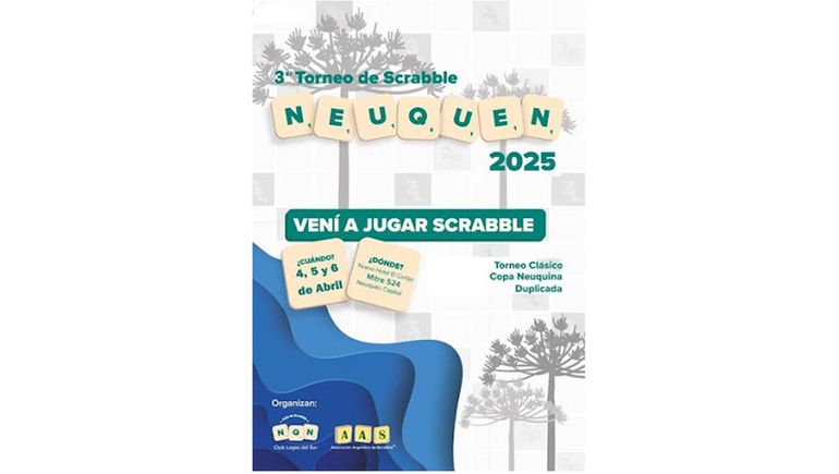 Para amigarse con las palabras, la próxima semana tendrá lugar en Neuquén un Torneo de Srabble. Se trata del tercero que se disputará del 4 al 6 de abril en el Hotel Cortijo, ubicado en calle Mitre 526 de esta ciudad, adonde concurrirán participantes del todo el país.