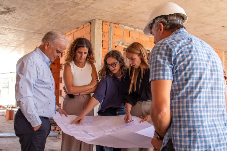 De la recorrida por la obra participaron la ministra de Infraestructura, Tanya Bertoldi; las secretarías de Vivienda y Hábitat, Ana Servidio, y de Obras Públicas, María Eugenia Ferraresso; el presidente de IPVU-ADUS, Pablo Diétrich y el coordinador general del ministerio de Infraestructura, Gonzalo Peralta.