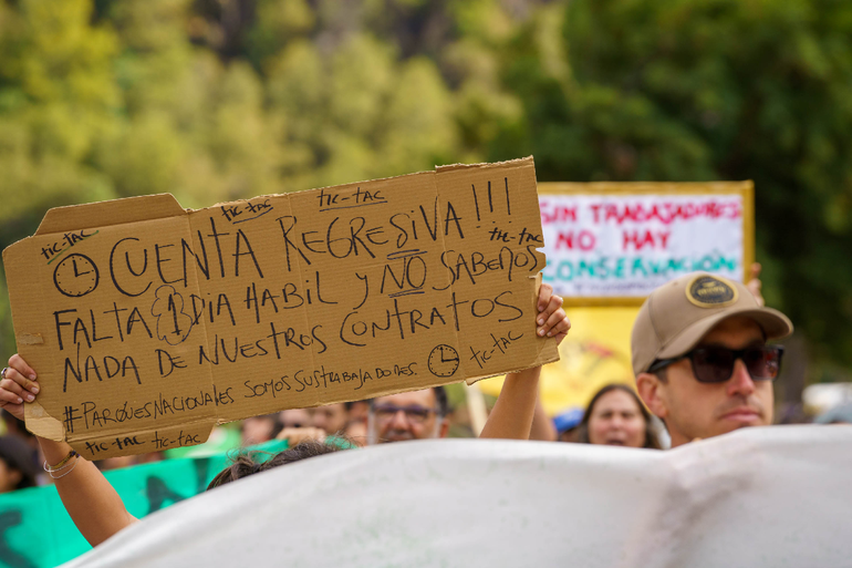 En el marco del ajuste en las distintas áreas del Estado que está realizando el gobierno nacional, los trabajadores de Parques Nacionales marcharon porque el 31 de marzo vencían los contratos de 50% de los agentes de conservación que se renuevan cada tres meses, por la aplicación del artículo 3° del decreto presidencial 84/2023 de Nación vigente desde diciembre último, que establece que las contrataciones no podrán ser renovadas por un período mayor de 90 días corridos.