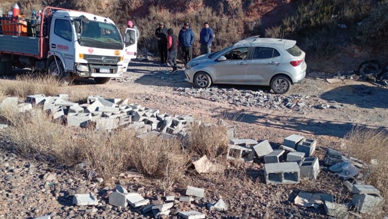 Desde temprano, los caminos alternativos hacia el Mercado Concentrador se vieron colapsados por la gran cantidad de vehículos que intentaban evitar el bloqueo. La situación se volvió aún más complicada a media mañana, cuando un camión cargado con bloques de cemento intentó maniobrar por una vía reducida y una parte de la carga cayó sobre un Fiat Argo. El auto era ocupado por dos vecinos de Centenario, quienes milagrosamente salieron ilesos, aunque el vehículo sufrió importantes daños: tanto el techo como el parabrisas quedaron severamente afectados.