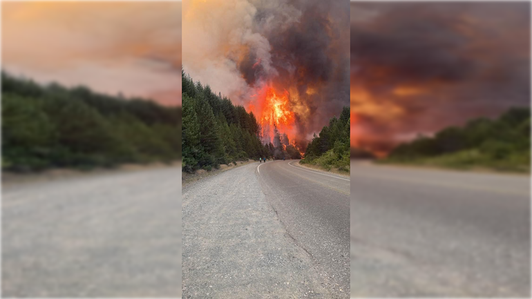 Las dimensiones de las llamas obligaron a interrumpir el tránsito entre el Puente Salamín y Epuyén. Rige una máxima alerta en la Comarca Andina.