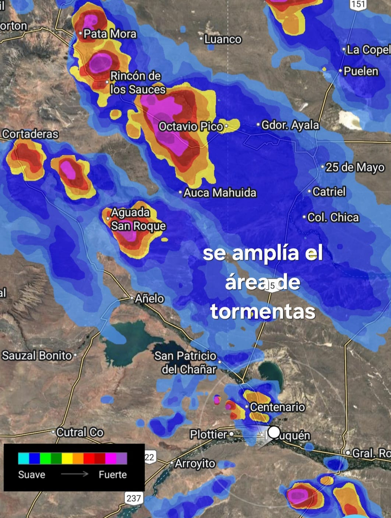 Tras el temporal que afectó localidades como Rincón de los Sauces, este lunes se anunció la suspención del tránsito en algunas rutas por la formación de tormenta prevista para esta tarde.