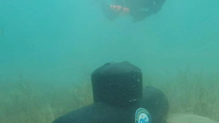 Un grupo de instructores de buceo realizó una réplica con materiales reciclados. Quedó sumergida a 5 metros de profundidad.