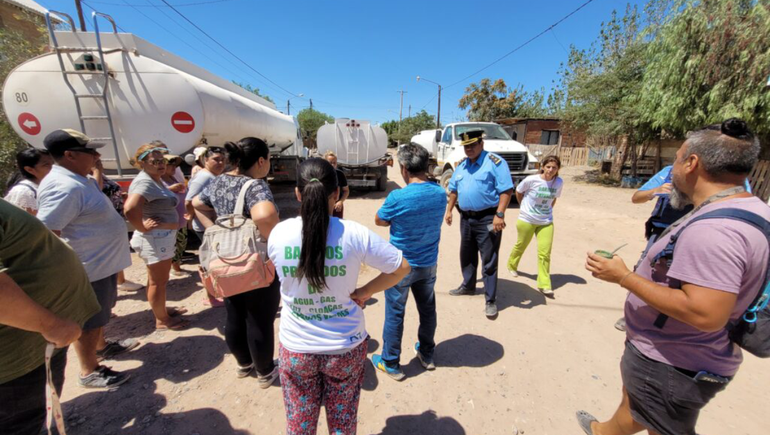 Por la falta de agua potable, vecinos indignados salieron a la calle y retuvieron cuatro camiones de la Municipalidad y un colectivo de la empresa Pehuenche. Lo paradójico del reclamo es que los camiones están cargados de agua potable para abastecerlos.
