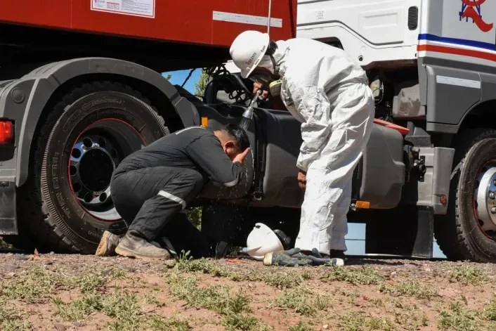 Miguel Leiva, coordinador de Emergencias de la municipalidad de Añelo, explicó a LMNeuquén que el operativo se inició con un supuesto choque entre un camión y una camioneta. Por este incidente se produjo la pérdida de fluido tóxico en el acceso a la localidad, en el corazón de Vaca Muerta.