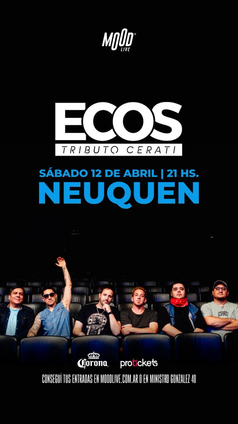El segundo espectáculo es Ecos, tributo a Gustavo Cerati. Esta banda neuquina se fundó en 2016 en la ciudad de Neuquén y desde entonces ha recorrido diversos escenarios, tanto en su ciudad natal, como fuera de ella, ofreciendo un espectáculo que acerca a la audiencia la música de Gustavo Cerati, pilar fundamental en el rock latinoamericano.