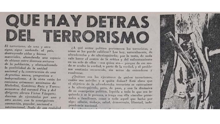 Ya después del golpe el 16-06-76 en el semanario Tribuna Popular (del PCA) dirigido por Julio Laborde, una nota titulada “Que hay detrás del terrorismo” decía: