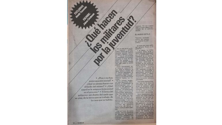 En el número 9 de la revista del 10 de septiembre de 1976, Jaime Marín como “Jaime Cárdenas” escribe una nota “especial desde Tucumán” titulada “¿Que hacen los militares por la juventud?”.