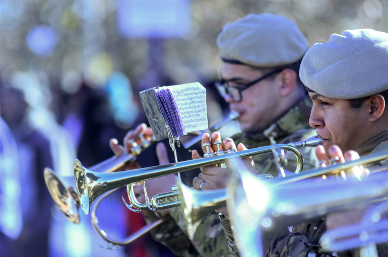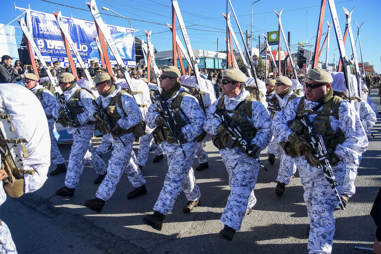 Entre las fuerzas de seguridad desfiló personal de Gendarmería, Policía Federal, Policía de Neuquén, Policía Aeroportuaria, Ejército, Prefectura Naval y distintos regimientos de Infantería de Montaña.