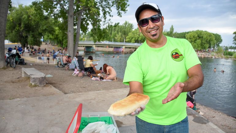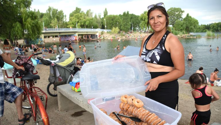 Frente a las altas temperaturas que llegaron a Neuquén, las personas se han volcado masivamente a los balnearios de la ciudad. Es por ello que al lugar se acercan comerciantes ambulantes con el fin de vender sus productos a quienes deciden ir a pasar el día y quieren comer algo con los mates o tererés.