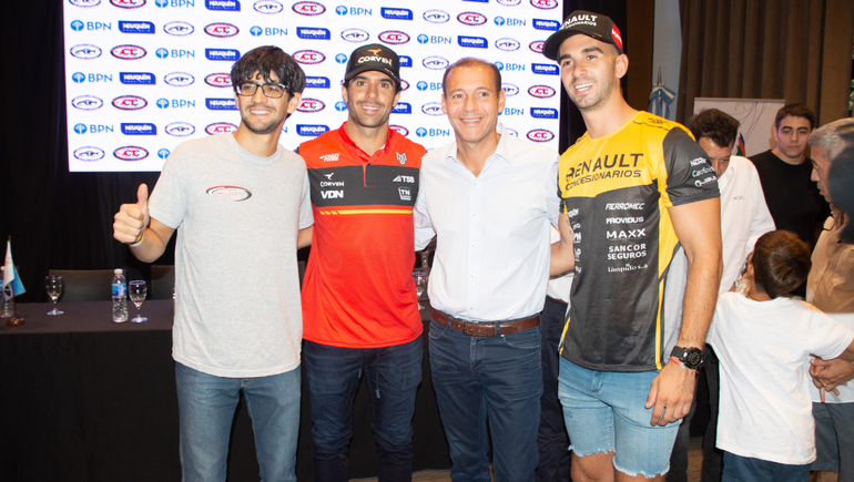 La conferencia de prensa fue encabezada por el gobernador Omar Gutiérrez y participaron, entre otros, tanto los pilotos neuquinos Juan Cruz Benvenuti (TC), Camilo Echevarría (TC) y Lautaro de la Iglesia (TC Pista), como el rionegrino y campeón de TC, José Manuel Urcera, quien lucirá “el uno” ante su público.