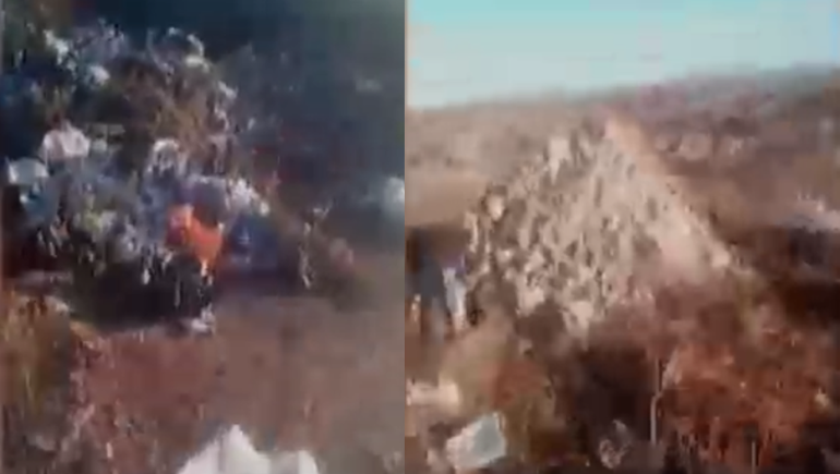 Según lo relatado por el hombre, a menudo llegan camiones con basura. "Así está quedando la barda de Cuenca XVI, estos son los camiones volcadores y contenedores que vienen a tirar la mugre a esta parte", dice el vecino mientras hace su recorrido y graba el estado de la barda.