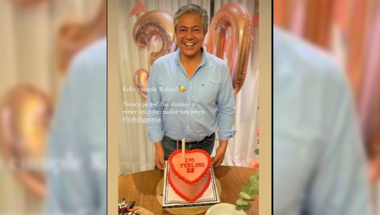 Rolando Figueroa, candidato a gobernador por Comunidad, pasó un día diferente justo en la previa de las elecciones. El día 14 celebró su cumpleaños número 54 y, durante los festejos, sus seres queridos bromearon con la edad del actual diputado nacional: decoraron la casa con globos con el número 30 y la torta llevaba el texto "I'm feeling 22", de la popular canción de Taylor Swift.