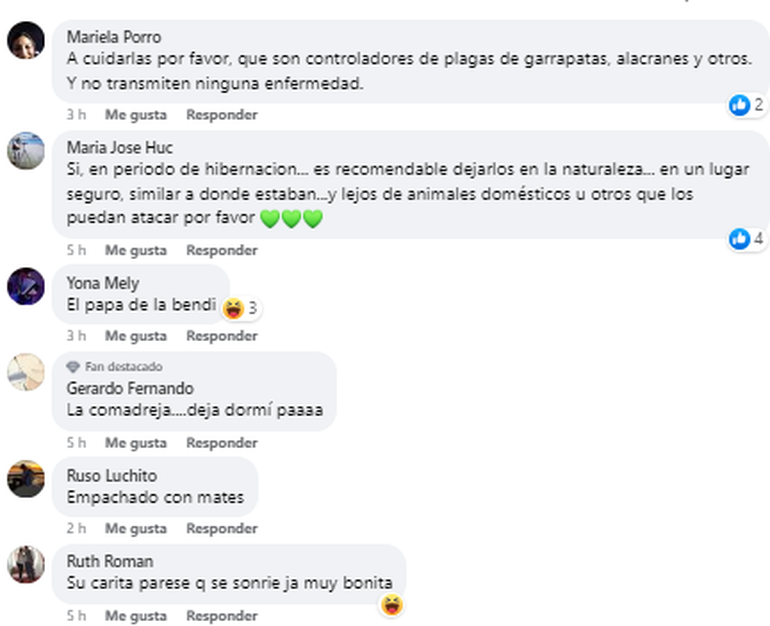 "Es recomendable dejarlos en la naturaleza... en un lugar seguro, similar a donde estaban...y lejos de animales domésticos u otros que los puedan atacar por favor" , agregó otra.