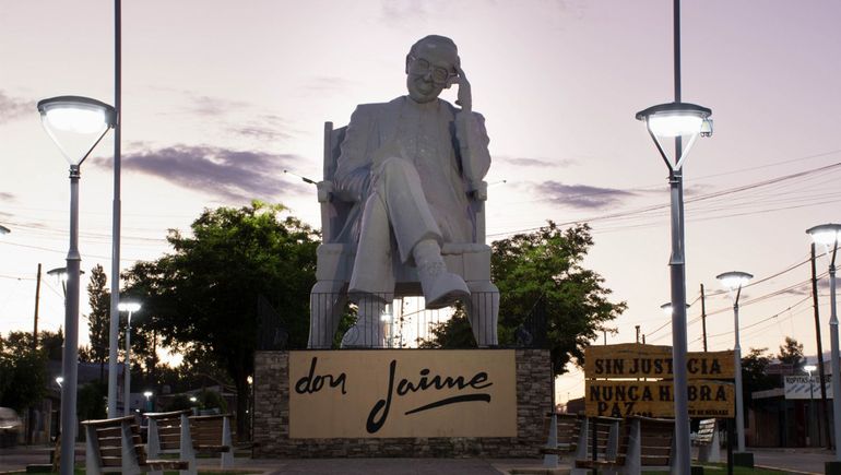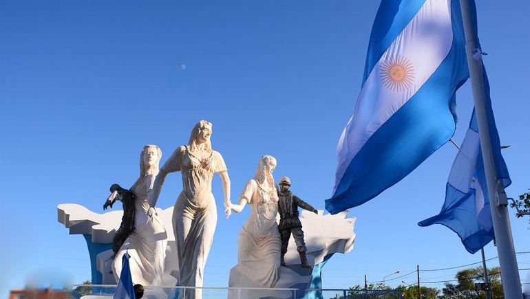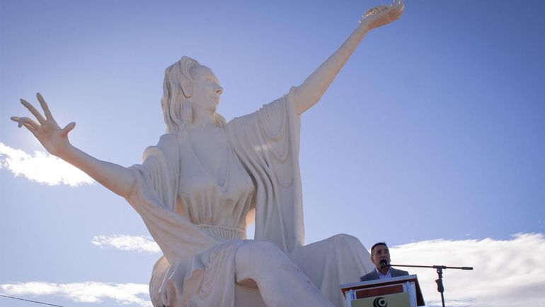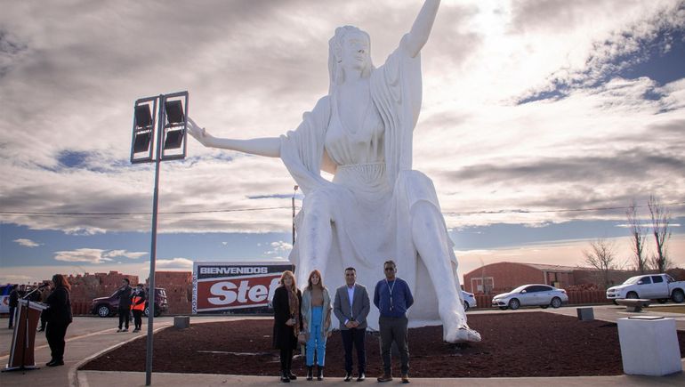 El lugar elegido fue el Monumento a la Mujer en esa ciudad de la comarca petrolera. Las imágenes de los monumentos del escultor Aldo Beroisa.