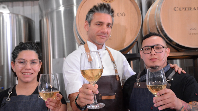 La emisión terminó con un brindis de lujo catando las grandes cualidades de los vinos Cutral Co, producidos con cosecha de viñedos locales.
