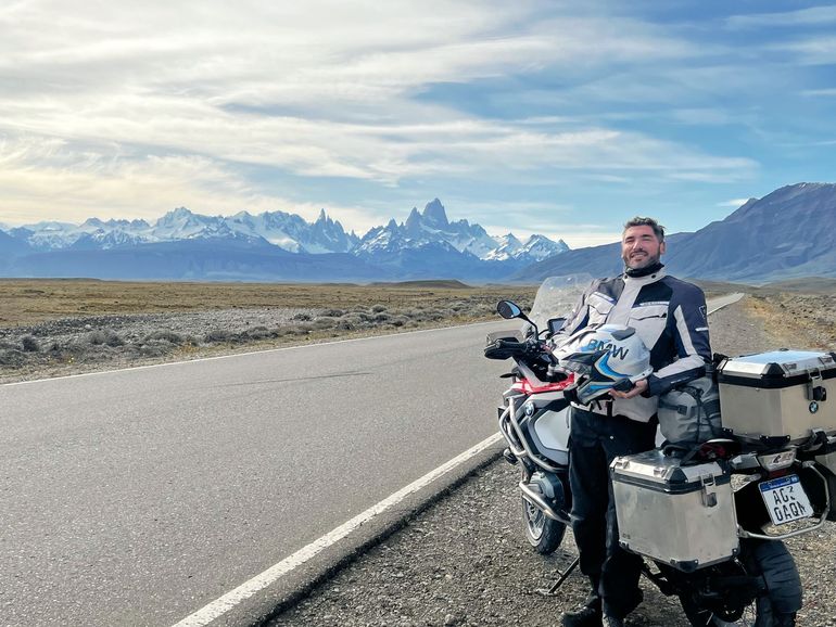 De conductor de TV a la ruta: cumplió su sueño y viajó en moto al glaciar Perito Moreno