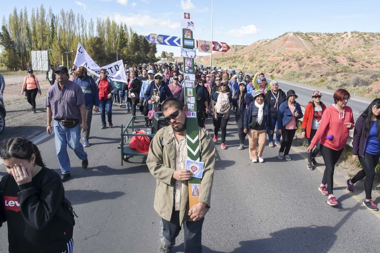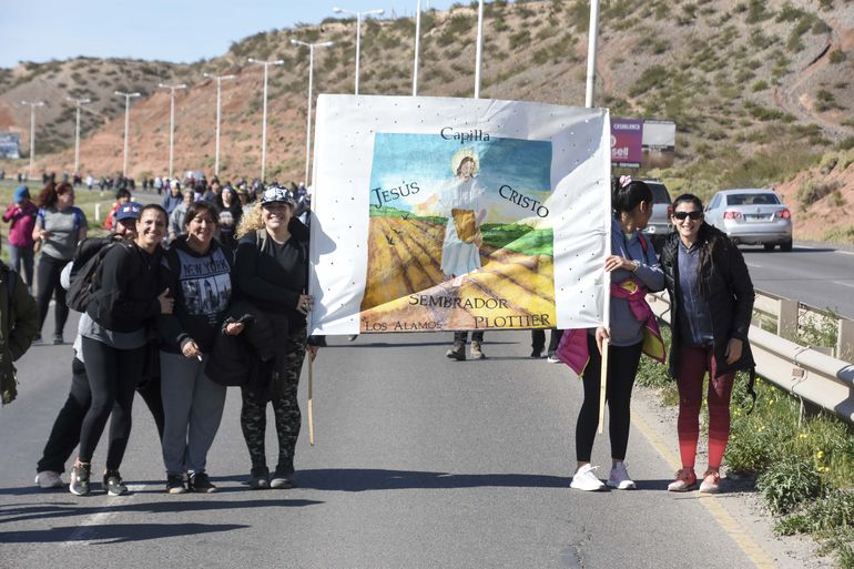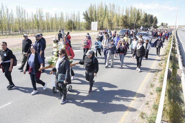 Por más de cuatro horas de caminata, los feligreses, cantando y aplaudiendo, recorrieron la Ruta 7, desde el acceso por Doctor Ramón en la capital neuquina hasta la plaza del Bicentenario. Se pudo ver a cientos de jóvenes y agrupaciones religiosas.