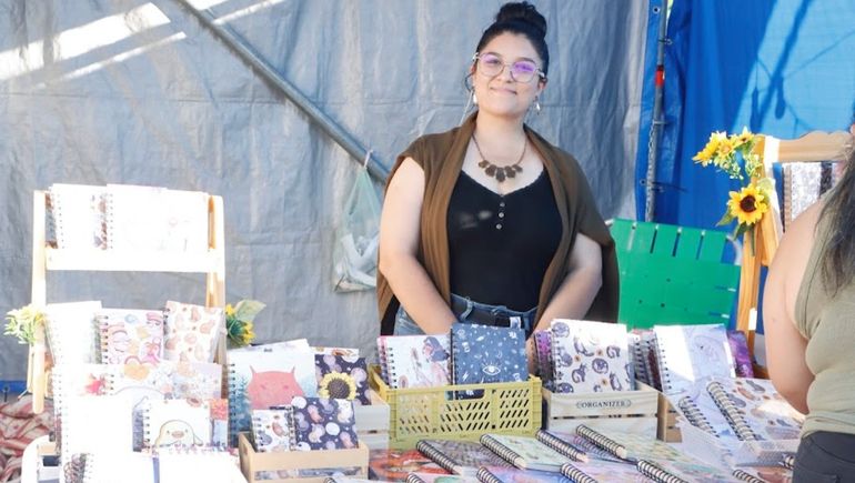 Entre los stands, también hay propuestas de emprendedores comprometidos con el medio ambiente. Esto queda de manifiesto en las agendas hechas con productos 100% naturales y reciclados que hace Danna, una joven artista de la ciudad. "Hago agendas, libretas, cuadernos, las hojas son de papel de caña de azúcar, que es mucho más natural porque están crecen todos los años, no se cortan árboles", explicó.