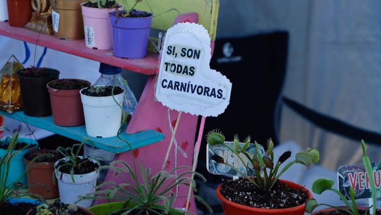 Entre los primeros stands, más precisamente en el número 2, se encuentra una familia dedicada al cultivo de plantas carnívoras. "Hace siete años, una sobrinita nos transmitió su curiosidad respecto a estas plantas y lo que podían hacer, así que nos pusimos a averiguar dónde crecían y cómo se adaptaban a los ecosistemas", contó Paola, emprendedora, en diálogo con LMNeuquén.