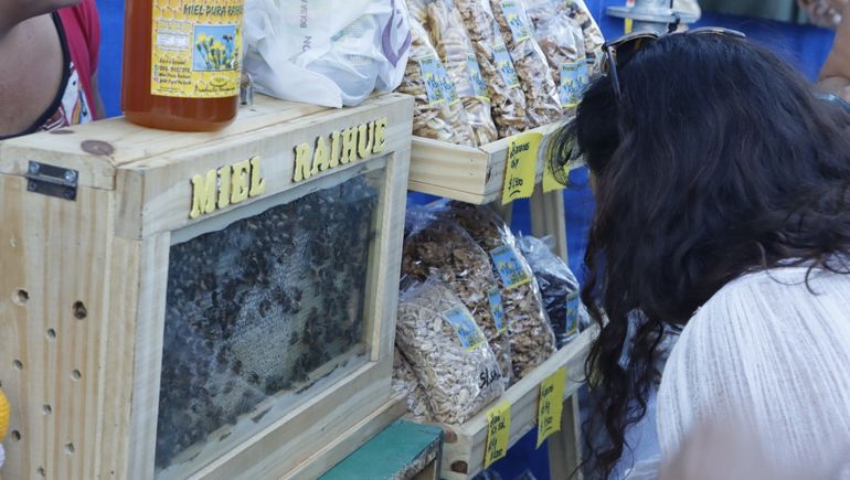 Este año instalaron en su stand una pequeña colmena vidriada para que todos los interesados puedan apreciar el trabajo de las abejas. "Nos gusta cuando la gente se acerca a ver a las abejas, que nos consulten, así podemos explicarles, es muy gratificante", aseguró.