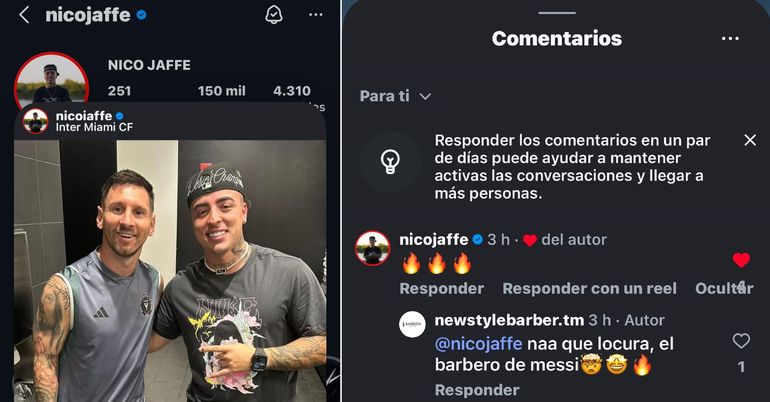 Por otra parte el video, que muestra al barbero realizando el corte de pelo con estilo y precisión, fue subido a sus redes sociales y rápidamente se convirtió en un éxito. Sin embargo, lo que realmente hizo que el video de Gonzalo se destacara fue el comentario de Nico Jaffe, uno de los barberos personales de Lionel Messi. "Me emocionó muchísimo que el barbero de Messi me esté comentando", dijo Gonzalo con una inmensa sonrisa. "Es un sueño hecho realidad", reconoció.