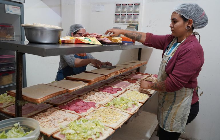 "Los clientes dicen que nuestros sánguches tienen con sabor único, que son ricos y frescos. Es que los vamos haciendo a medida que van pidiendo, es como si fuera una casa de comidas rápidas donde el cliente no espera mucho, se los hacemos en el momento y salen muy rápidos", aseguró.