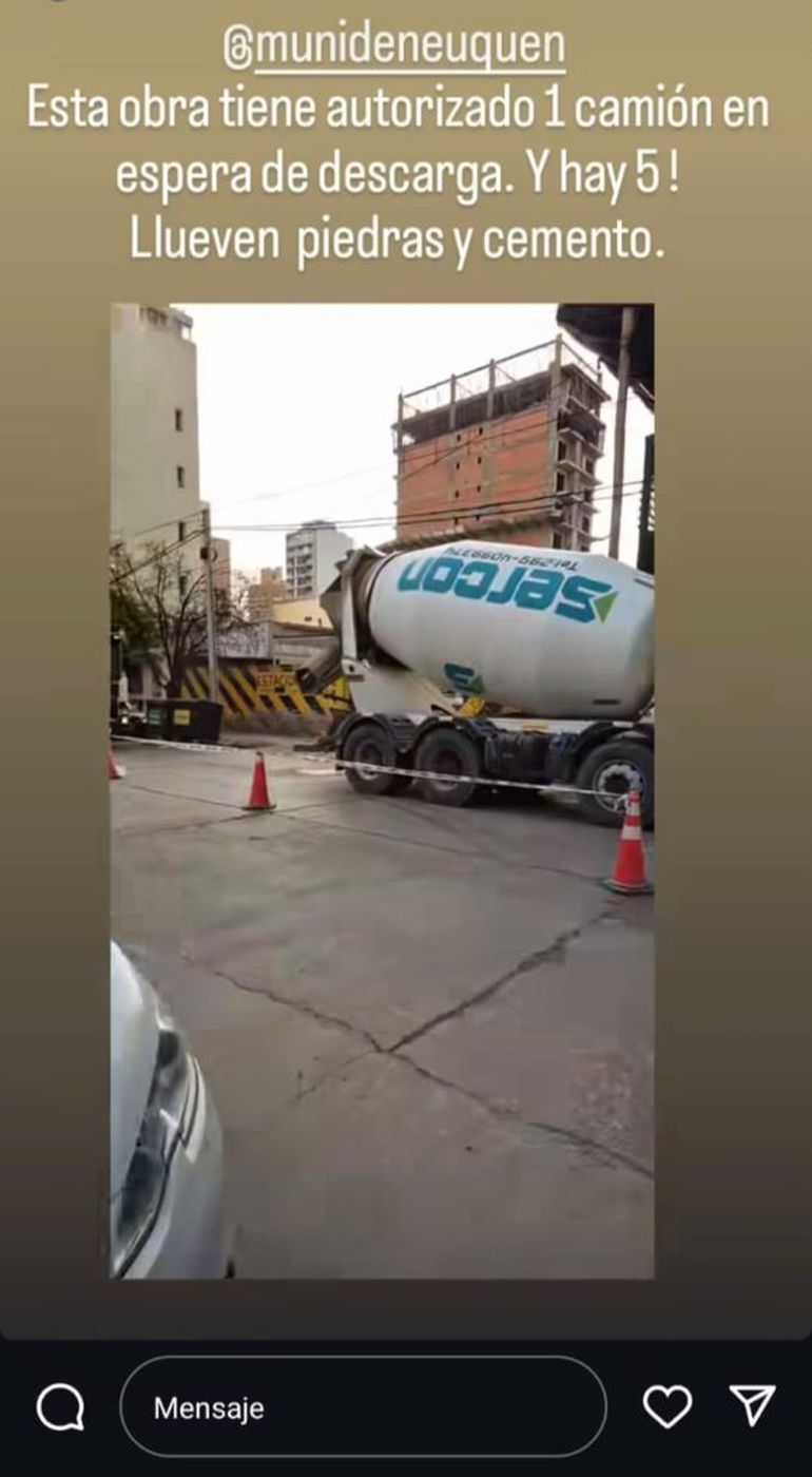 A su vez, aseguró que un episodio de inseguridad se repitió el sábado cuando desde la oficina observaron más camiones de los permitidos: "La empresa que lleva cemento, tenía cinco camiones a lo larga de la cuadra, entonces Tránsito les dijo ustedes saben que tienen autorización para un solo camión en espera".