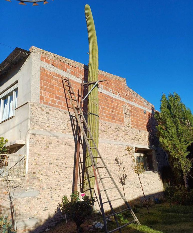 El cactus medía unos 12 metros y fue plantado por el chacarero local Carlos Fernández Carro, un apasionado por las plantas y la botánica. El cactus estaba junto a la construcción de un vecino y era tan grande que le habían tenido que colocar un caño tubing como tutor para que siga buscando más altura, sin dañar el edificio lindero al patio de Fernández Carro.