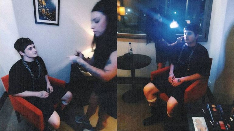 Unos meses atrás la contactaron de la producción de Dillom, uno de los artistas más brillantes que trascendió la escena urbana, para que lo maquillara en el show de la Fiesta de la Manzana donde iba a presentar la propuesta de su último disco Por cesárea.
