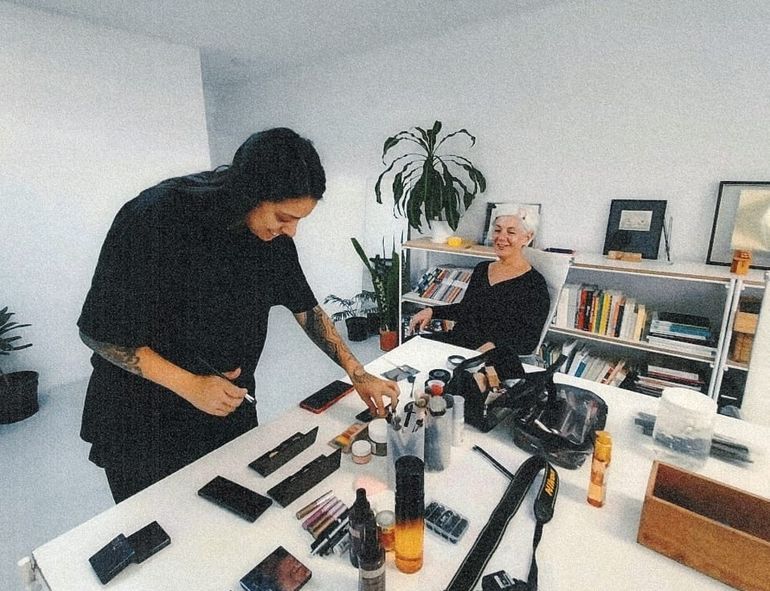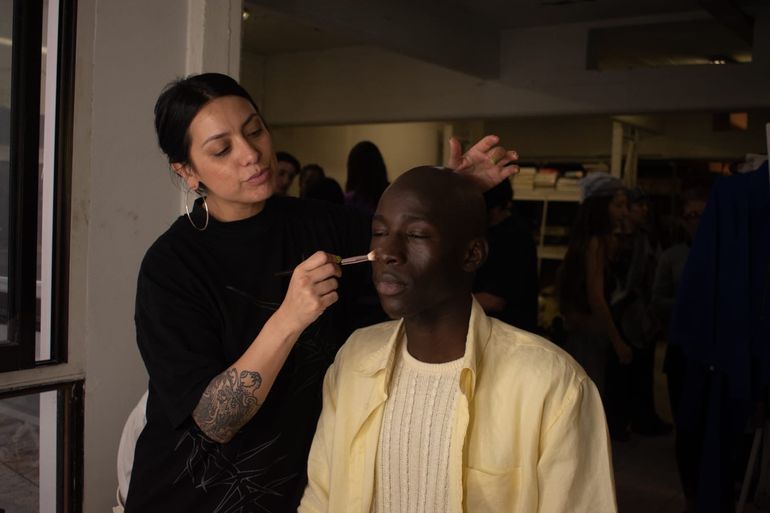“Tenía que salir a escena con el rostro sin tatuajes, así que había que tapar los dos mini tatuajes que tiene en la cara y hacer algo de make up para él y toda su banda. Yo estaba muy contenta, pero la que estaba más feliz es mi hija, que es muy fan de Dillom. La verdad que es un artista muy amoroso, respetuoso y profesional. Se sentó con su copa de vino, charlamos de la vida, en ningún momento me dijo: 'a ver qué me estás haciendo o cuánto te falta', me dejó trabajar súper tranquila”. Otras veces fue convocada para maquillar a Hilda Lizarazu, Marilina Bertoldi, Tan Biónica, Lila Downs. “El de Lila fue maquillaje full, ella es muy churra, muy preciosa”, dice.