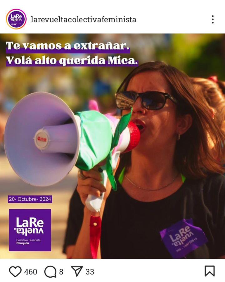 Gracias por enseñarnos tanto y recorrer este camino de lucha. Acompañamos a su familia y seres queridos en este doloroso momento. Te vamos a extrañar Mica. ¡Hasta la victoria siempre, compañera!