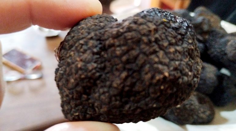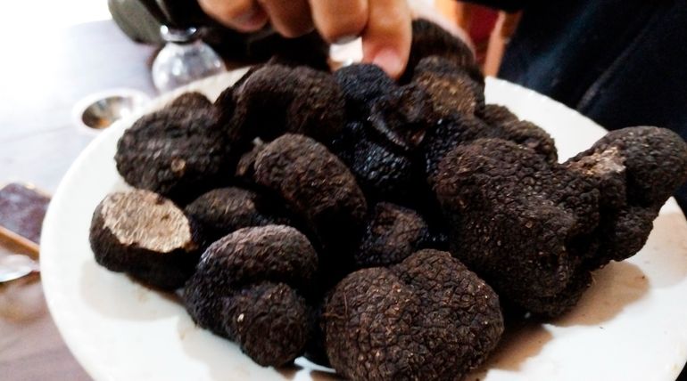 La trufa es un hongo comestible que nace bajo tierra y crece asociado a las raíces de diferentes árboles que lo hospedan. Se inocula y la espora se expande, no en cualquier árbol si no especialmente en las encinas o robles. Perros adiestrados detectan el aroma al momento de salir a buscarlas. Esas búsquedas se denominan “cazas” y se realizan anualmente en los meses de julio y agosto.
