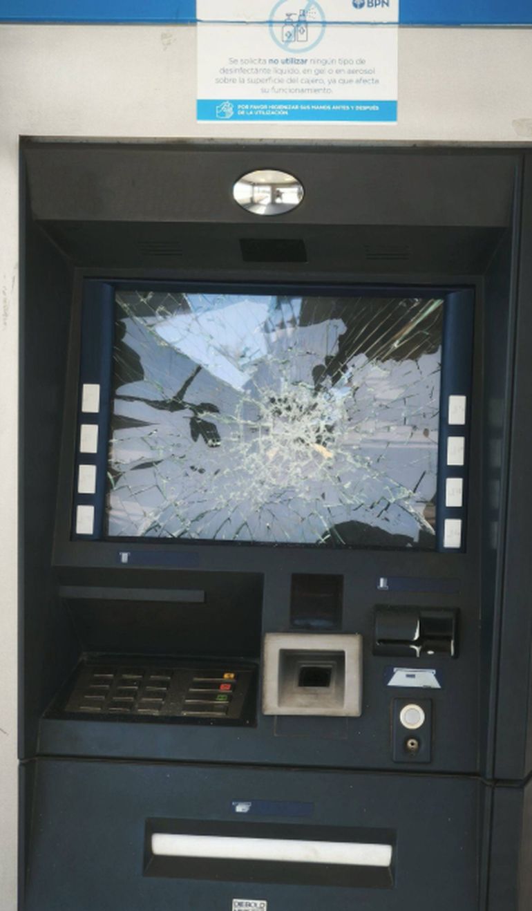 La situación fue advertida por la vecina Patricia Alonso, quien relató que se acercó al cajero para realizar una operación y se encontró con el dispositivo fuera de servicio y con la pantalla completamente destruida. Según contó, el primero en notar la situación fue un vecino que llegó al lugar unos instantes antes que ella y le advirtió que el cajero estaba roto y que no podía utilizarse.