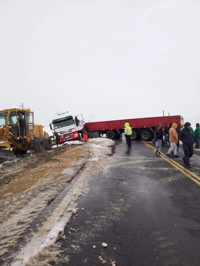 Este sábado un camión que iba en dirección a la localidad de Las Lajas quedó cruzado sobre la Ruta Nacional 40, a la altura del acceso al paraje Los Catutos.