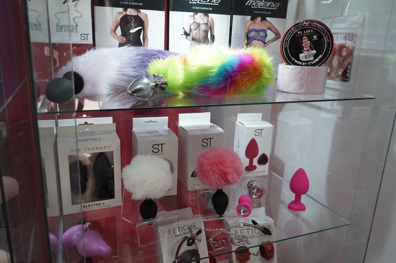 En cuanto a los vibradores en este local arrancan en los 30 mil pesos hasta los 150 mil. ¿Qué hace ese? "El de 150 mil pesos es una máquina sexual, vos la pegás en la pared y cuenta con un vibrador que se mueve solo y que podés manejar desde un control remoto", detalló.