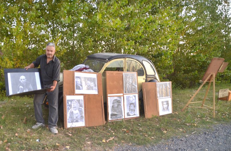 Un viejo y querido Citroen modelo 75 amarillo y negro, a la vera de la ruta 65, hace las veces de exhibidor de retratos de Maradona, Marilyn Monroe, Gustavo Cerati, The Rolling Stones, entre otras figuras de la música y el fútbol.