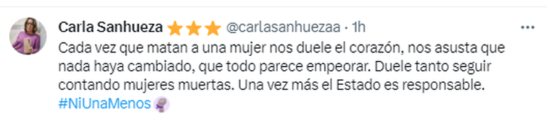 La dirigente de Libres del Sur, Mercedes Lamarca, también expresó su angustia, a causa de un nuevo femicidio en la provincia, a través de sus redes sociales.