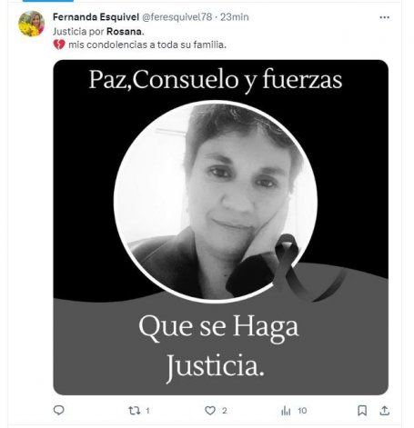 "Justicia por Rosana. mis condolencias a toda su familia", reclamó Fernanda Esquivel, concejala electa de Plottier por el partido Comunidad.