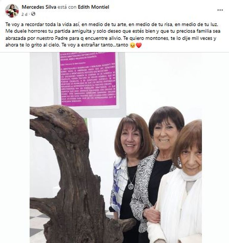 Mercedes Silva, una amiga, manifestó que la recordará siempre "en medio de su arte, de su risa y su luz". Confesó que le "duele horrores su partida" y solo desea que esté bien. "Que tu preciosa familia sea abrazada por nuestro Padre para q encuentre alivio", agregó.