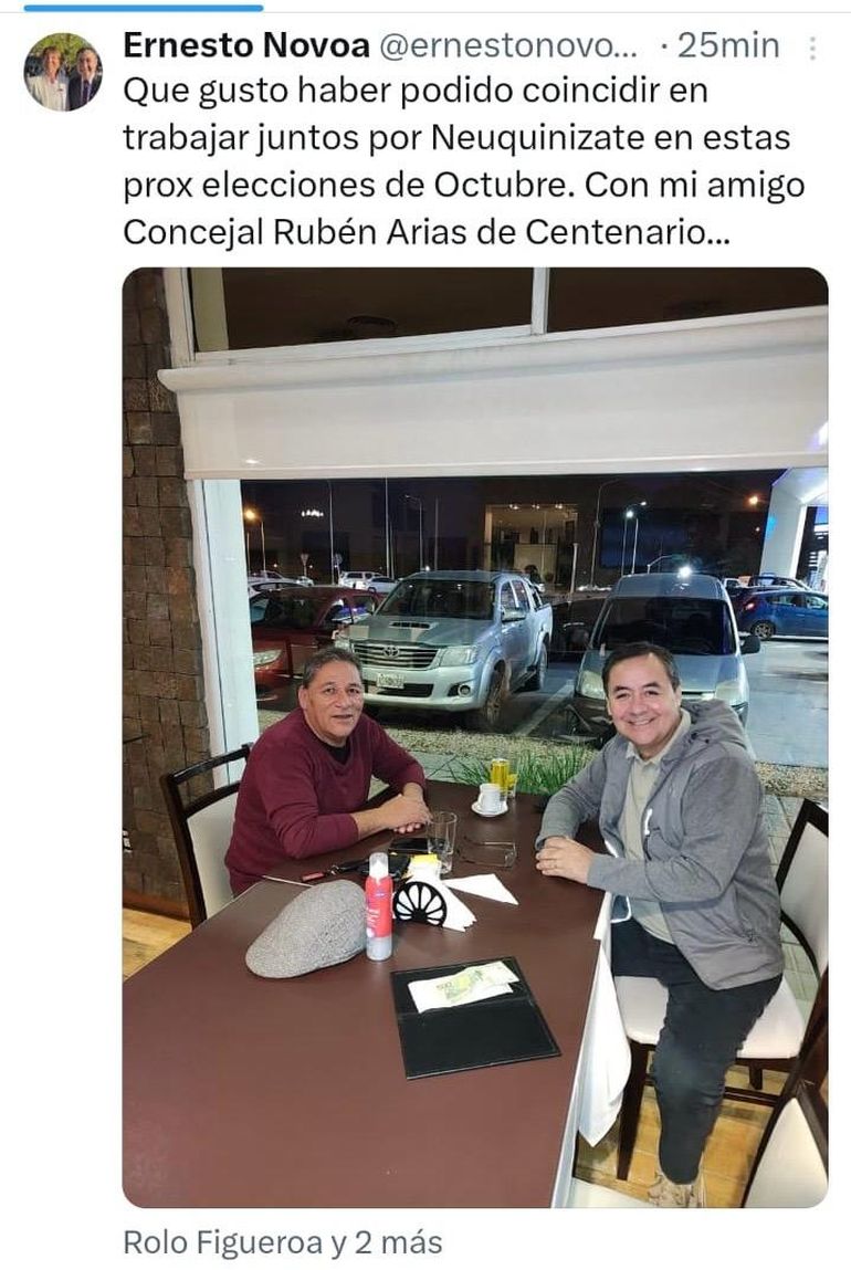 El primero en dar el volantazo fue Darío Reyes, concejal de Somos Centenario, que asumió en lugar de una edil titular. Su nombre apareció con fuerza cuando se viralizó una foto suya con Andrés Ros, y otros referentes de La Libertad Avanza Neuquén. La postal no tuvo lugar a ninguna suspicacia, porque hasta Nadia Márquez le dio la bienvenida. Reyes ya no juega para el intendente Esteban Cimolai, ahora está con el presidente Javier Milei.