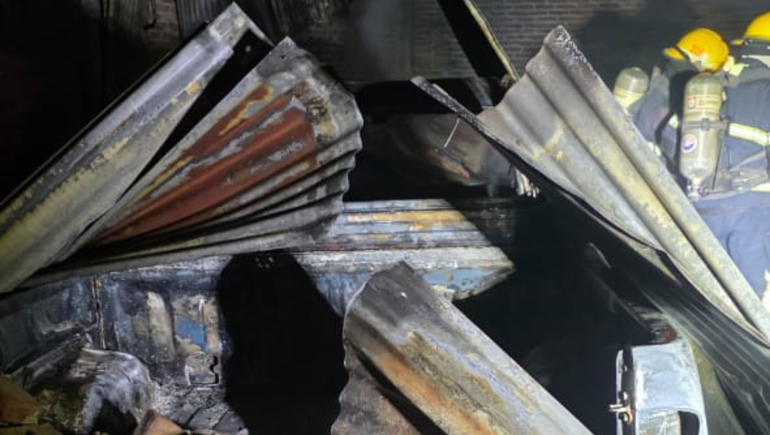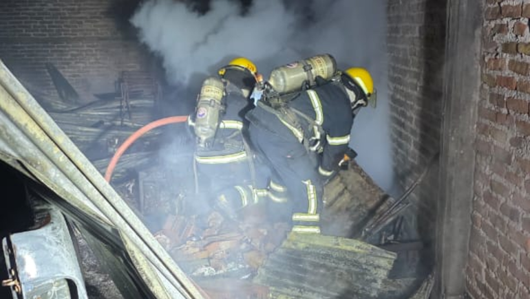 Al llegar se encontraron con un incendio generalizado dentro de un galpón que, para ese momento, ya había consumido una camioneta Toyota Hilux y también una moto que se encontraban dentro del edificio.