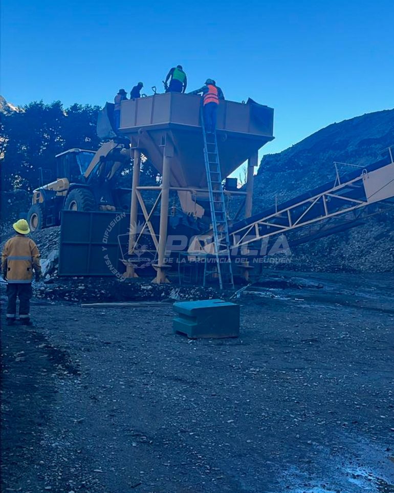 Según pudo averiguar LM Neuquén, el operario se mantuvo consciente en todo momento, aunque prácticamente inmóvil atrapado por el material calcáreo de la máquina trituradora de grandes dimensiones.